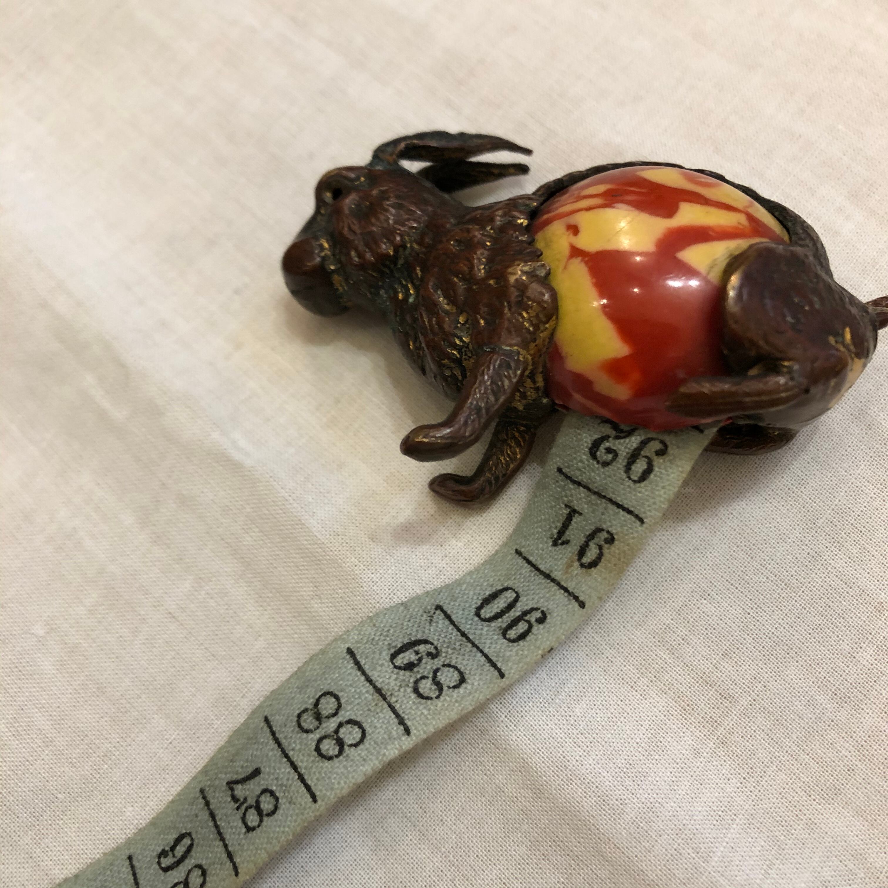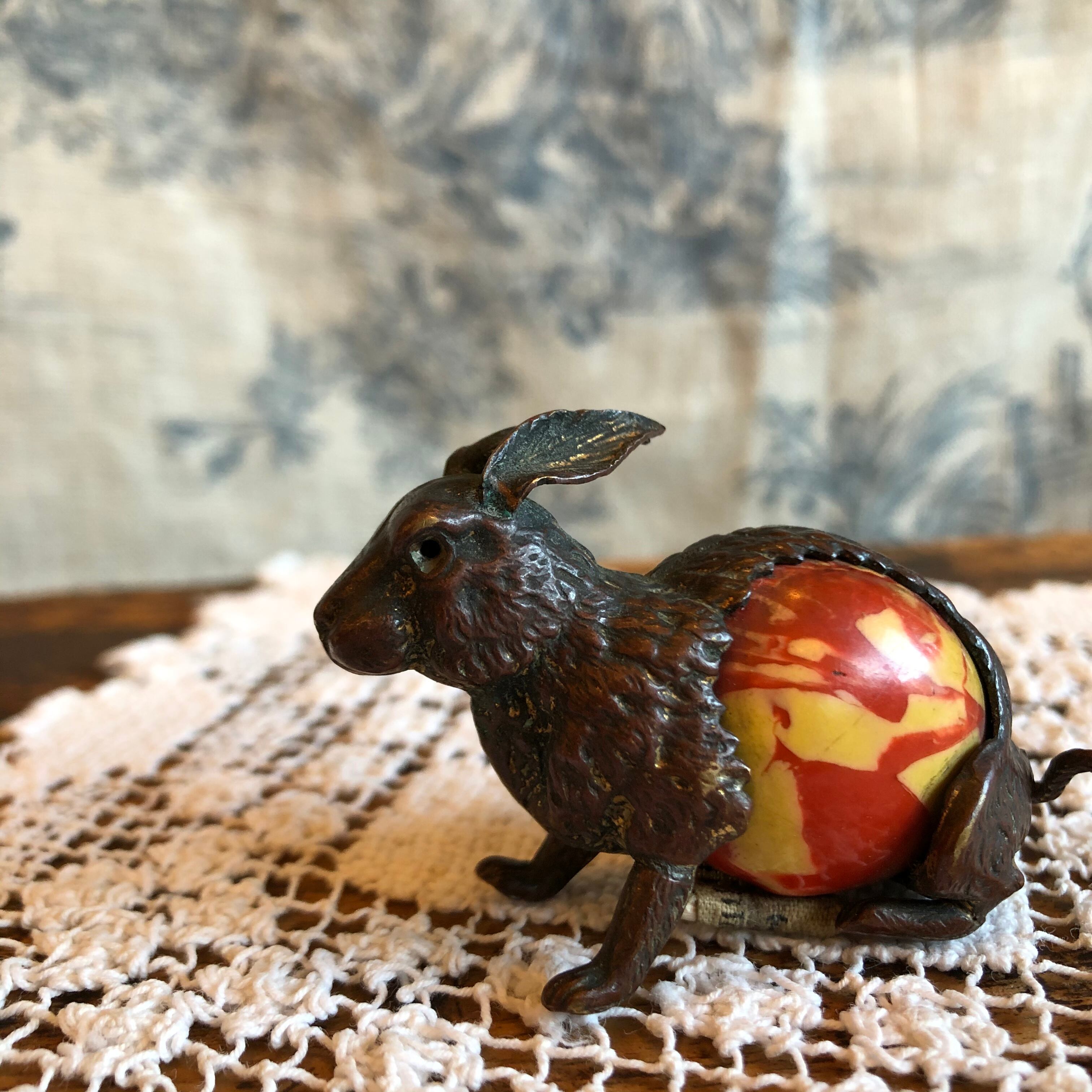 ウサギの目の部分に赤い石が埋まっていますが、残念ながら左目は欠損しています。