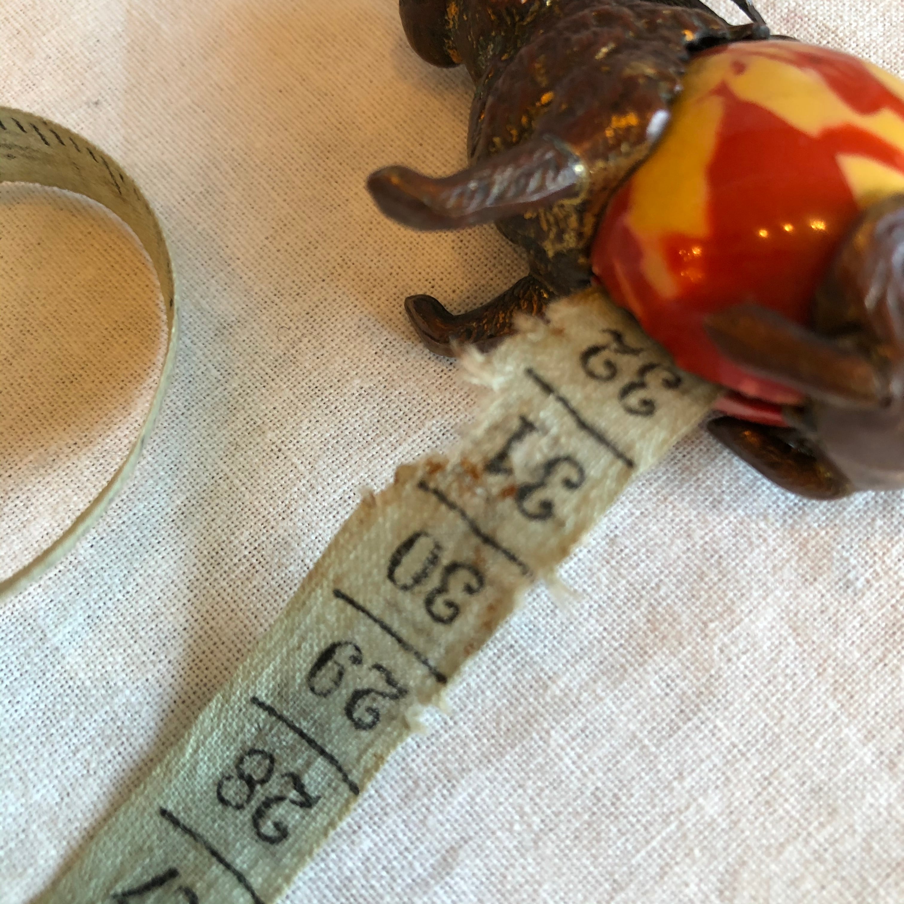 下側・おなかの部分から計測用の布テープが出て、しっぽの部分をクルクル回すと