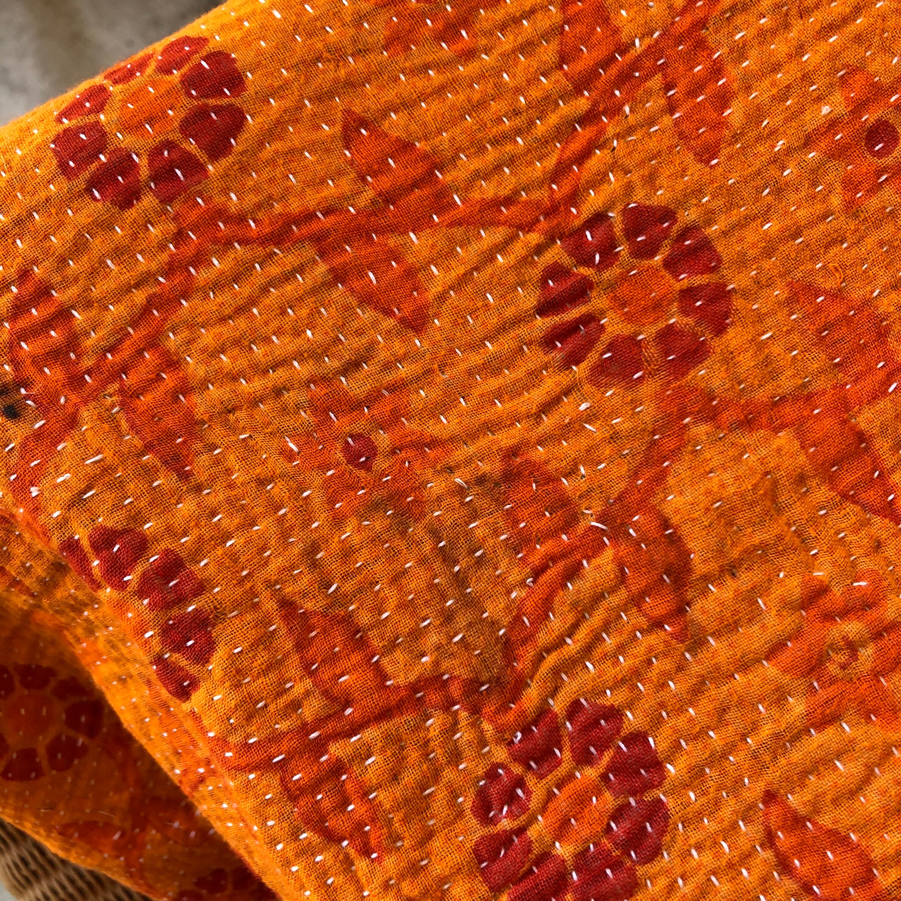 一針一針丁寧に作られたカンタ刺繍は、ハンドメイドのぬくもりと魅力が詰まっていると思います。また丈夫で手触りもとても良いのも魅力の一つです。