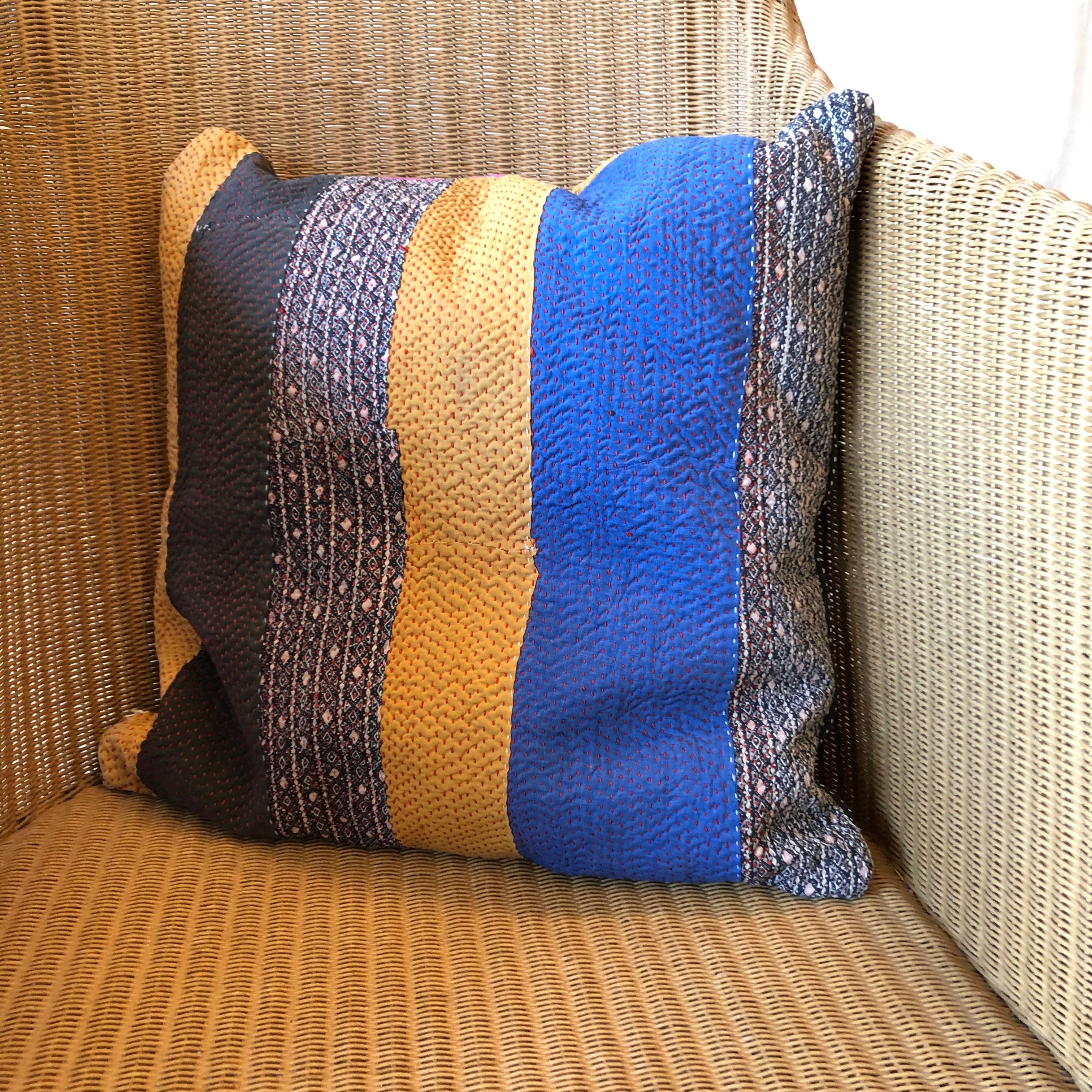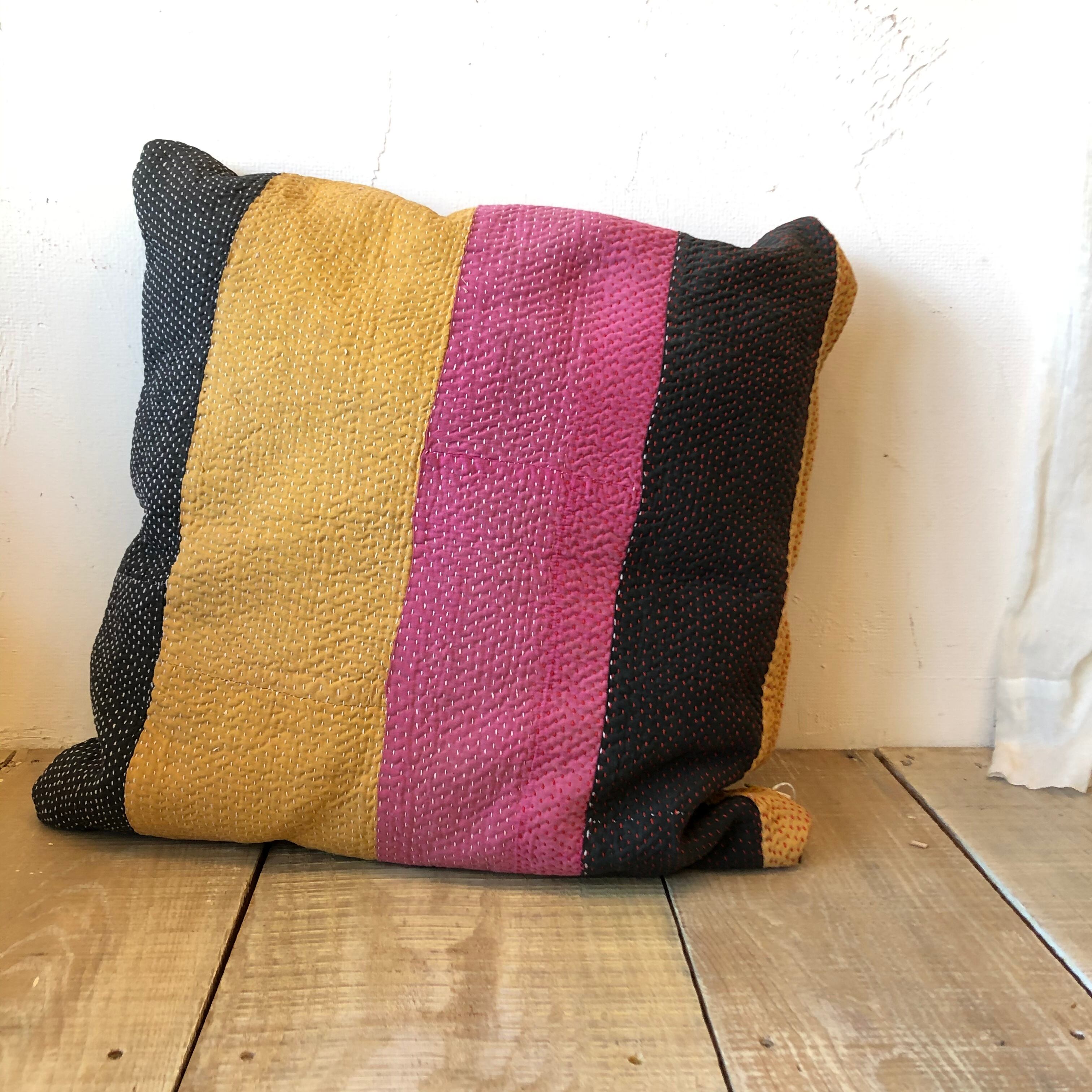 【ヴィンテージのカンタ刺繍・刺し子のスクエア型クッション】