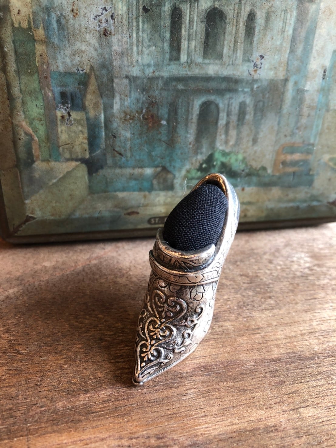 細かいディテールがとてもエレガントなヒール型になります。(1枚目の写真はイメージ写真になります。販売は靴型のピンクッションのみになります。)
