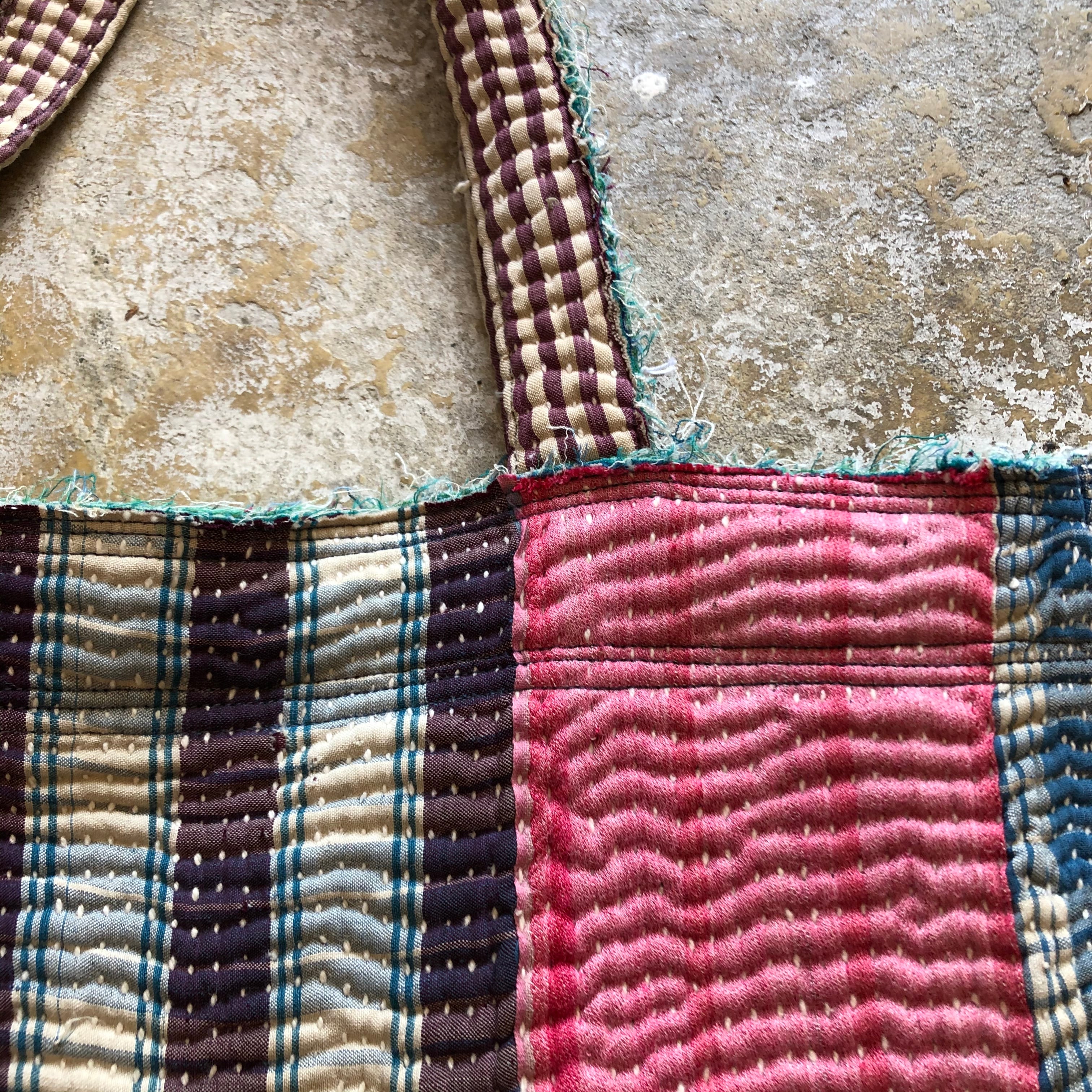 同じものはひとつとして存在しない、オールハンドメイドの温かみのあるキルトを使ったトートバッグになります。